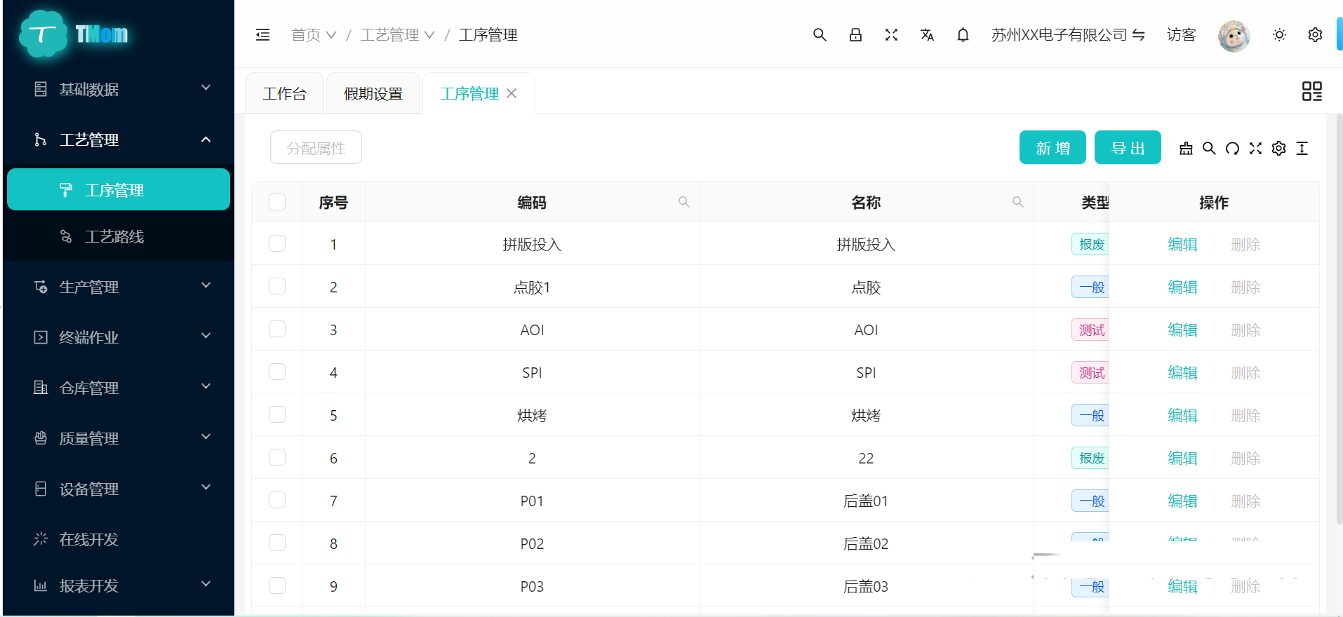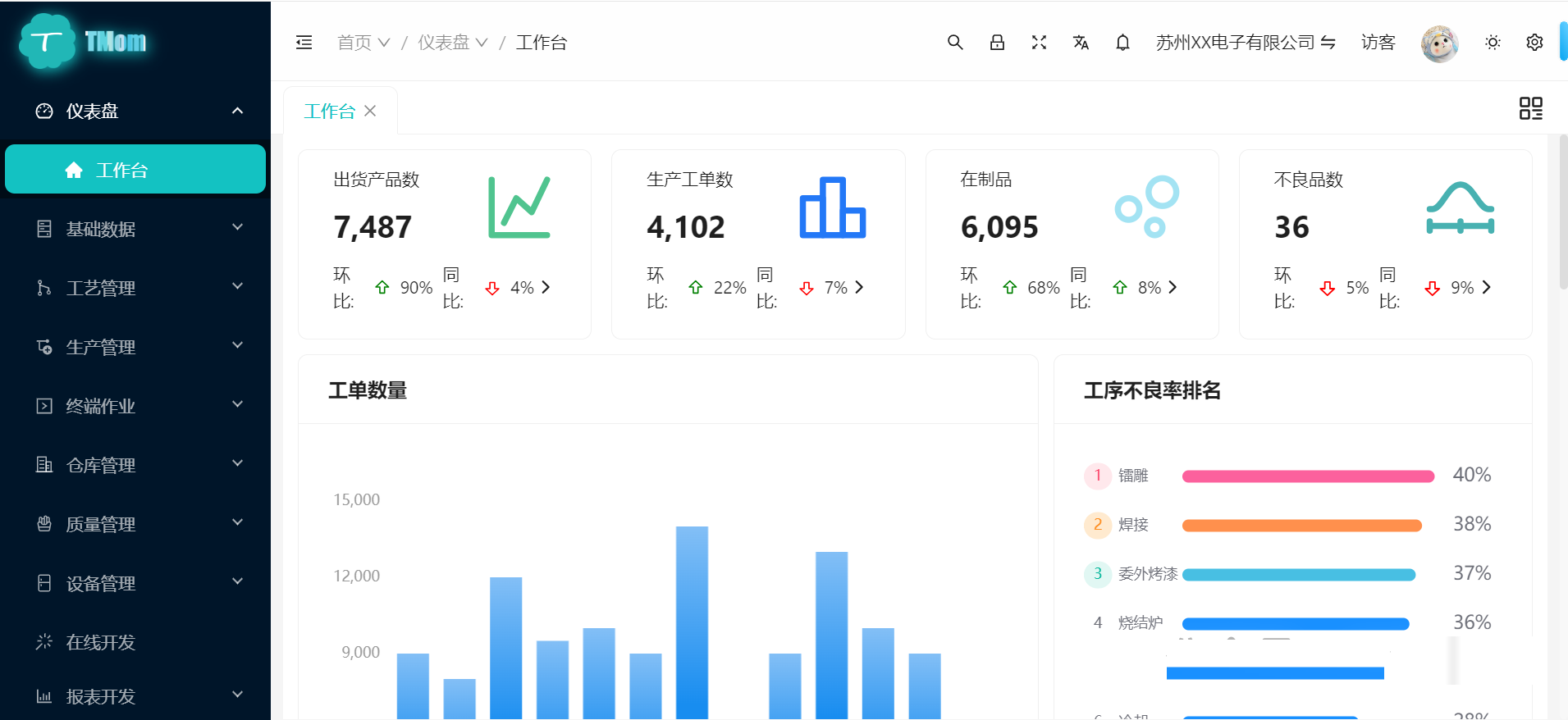 tmom 是一款致力于打造通用型生产制造系统的 MOM/MES 平台,目标是成为生产制造领域的全能解决方案。它能够支持多厂区和多项目级别的管理,无缝衔接生产流程的各个环节。从精准的计划排程到灵活的工艺路线设计,从直观的在线低代码报表到震撼的大屏看板,再到便捷的移动端和 AOT 客户端,功能丰富多样,全方位满足生产制造流程的多样化需求。它帮助您轻松掌控生产全局,提升生产效率,优化生产流程,为企业的数字化转型注入强大动力。