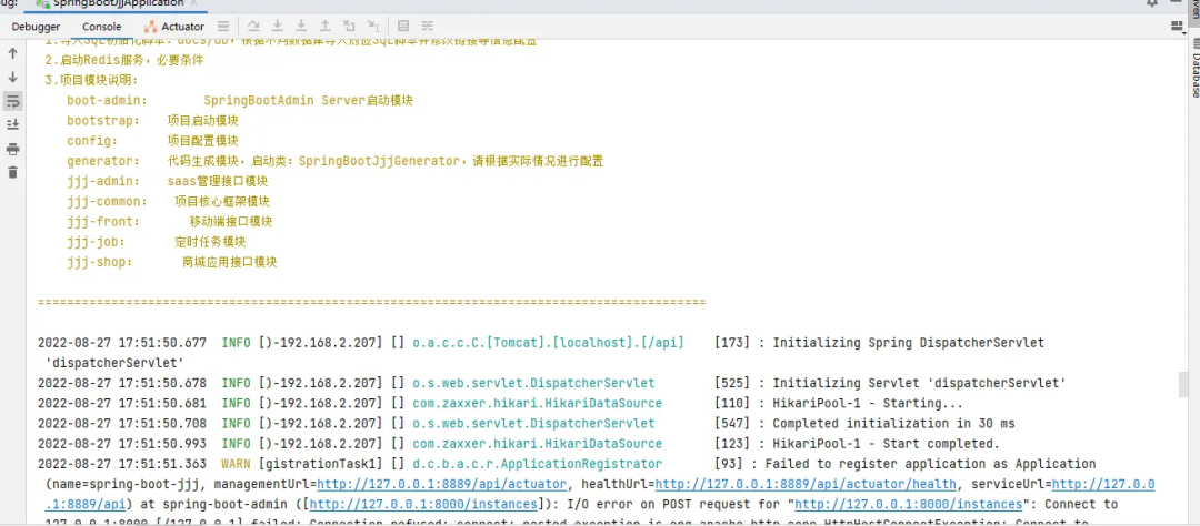 8、启动成功: 启动日志会有目录介绍
