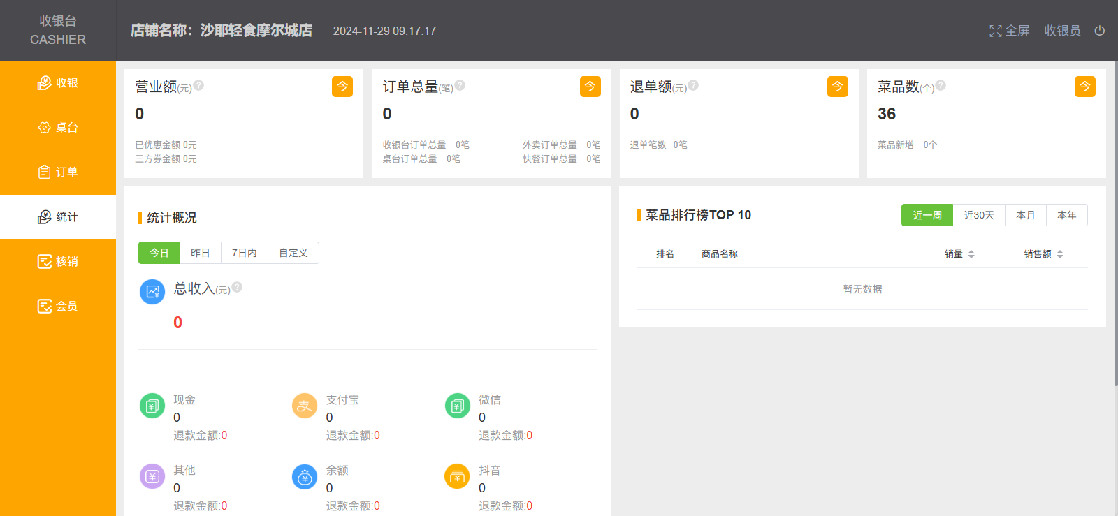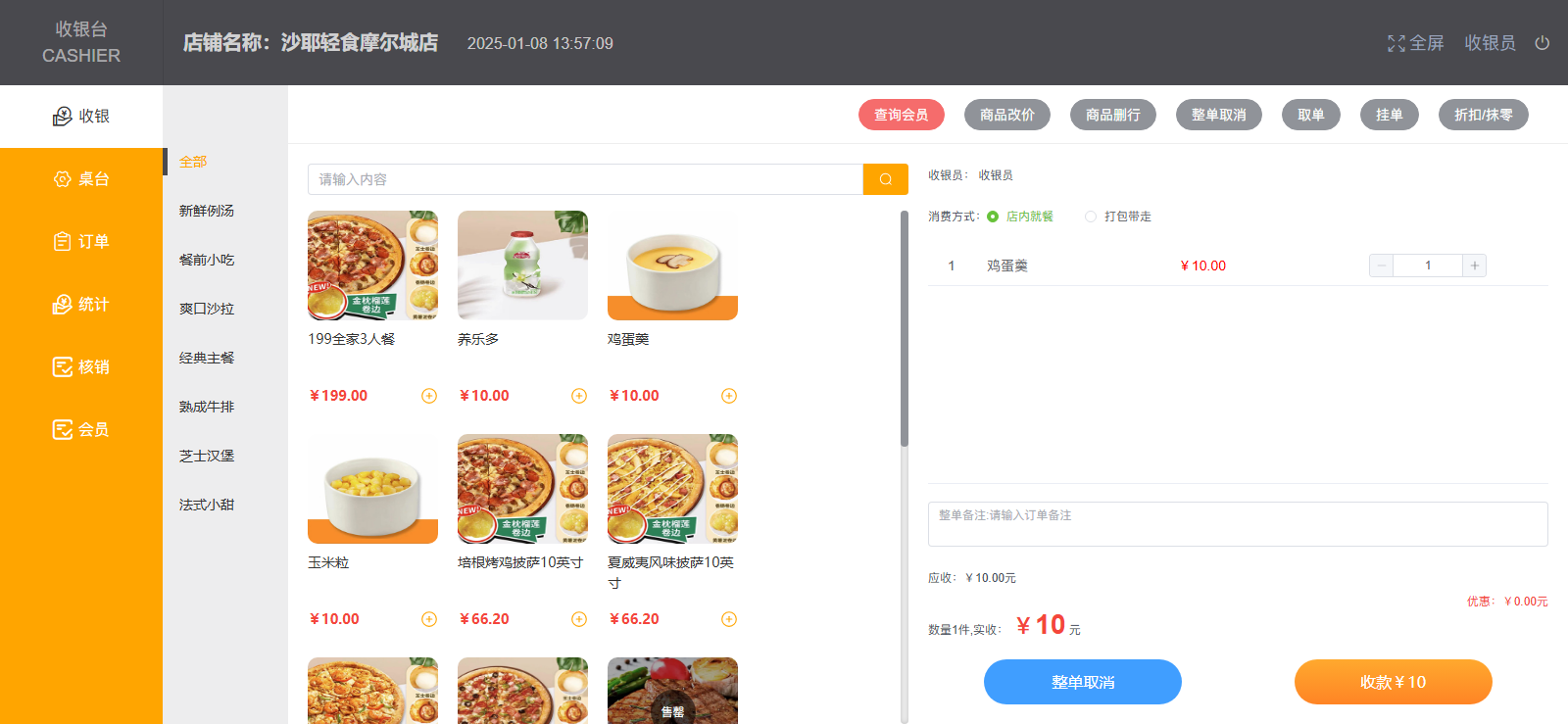 收银台:单独收银台后台,实现收银员下单、收款、打折等操作,简化结账流程。