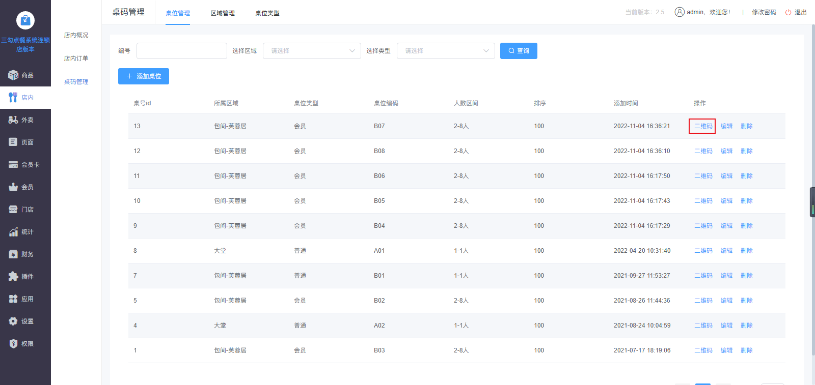 排队取号:包括桌号管理、取号设置、取号操作、列队等,优化顾客排队体验。