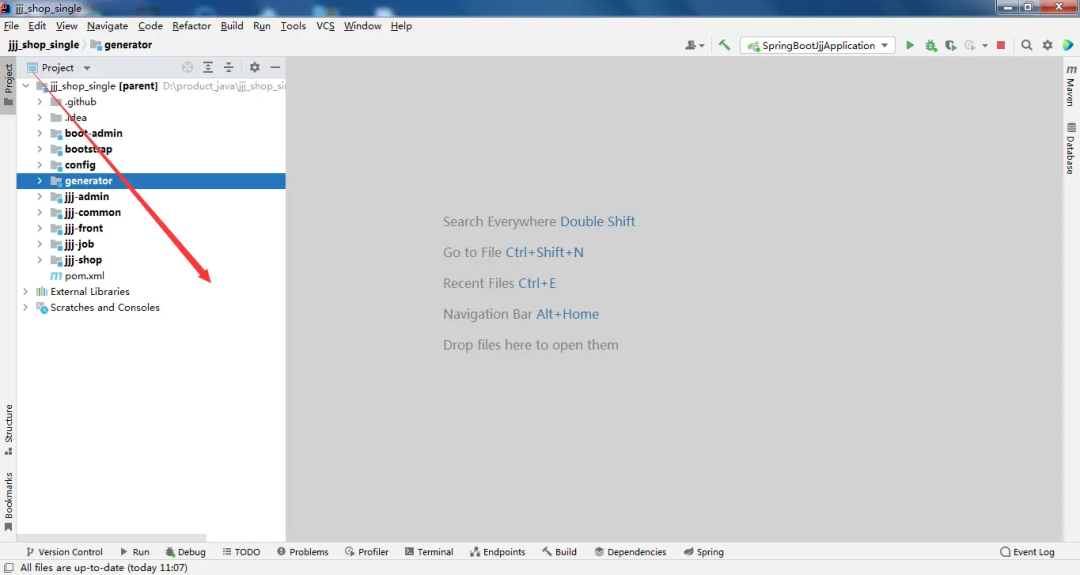 2、导入项目: 使用idea导入jjj_food_chain目录