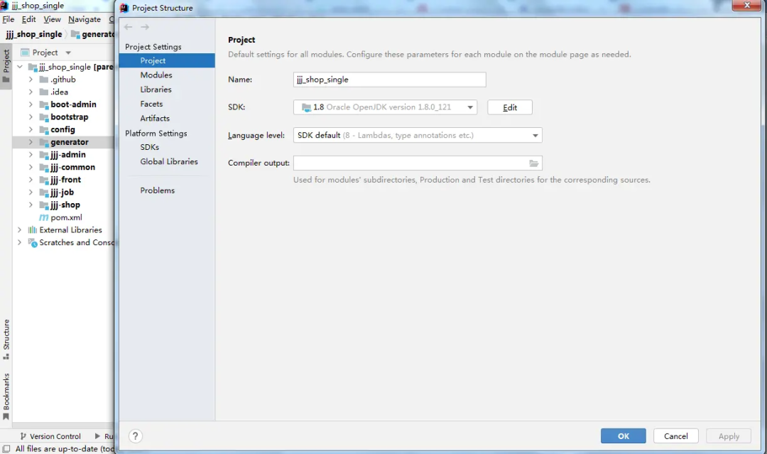 1、 File — Project Structue — Modules — 设置JDK版本等