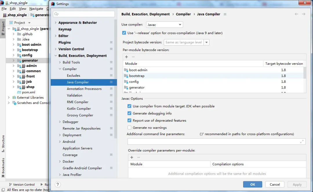 2、设定JDK编译版本: File --- Settings --- "compiler"