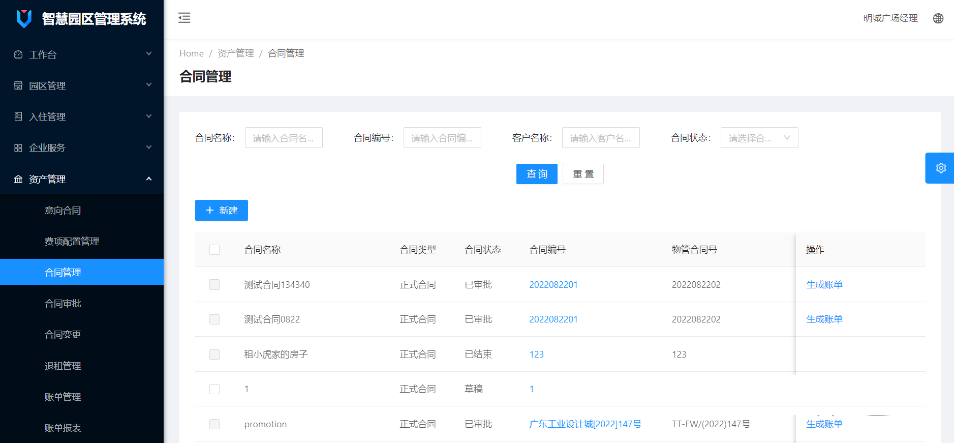 全面的园区管理解决方案:基于园区业务深度挖掘流程与系统的关键结合点,实现了资产管理、企业服务及档案管理等功能,并支持园区活动和商城搭建。