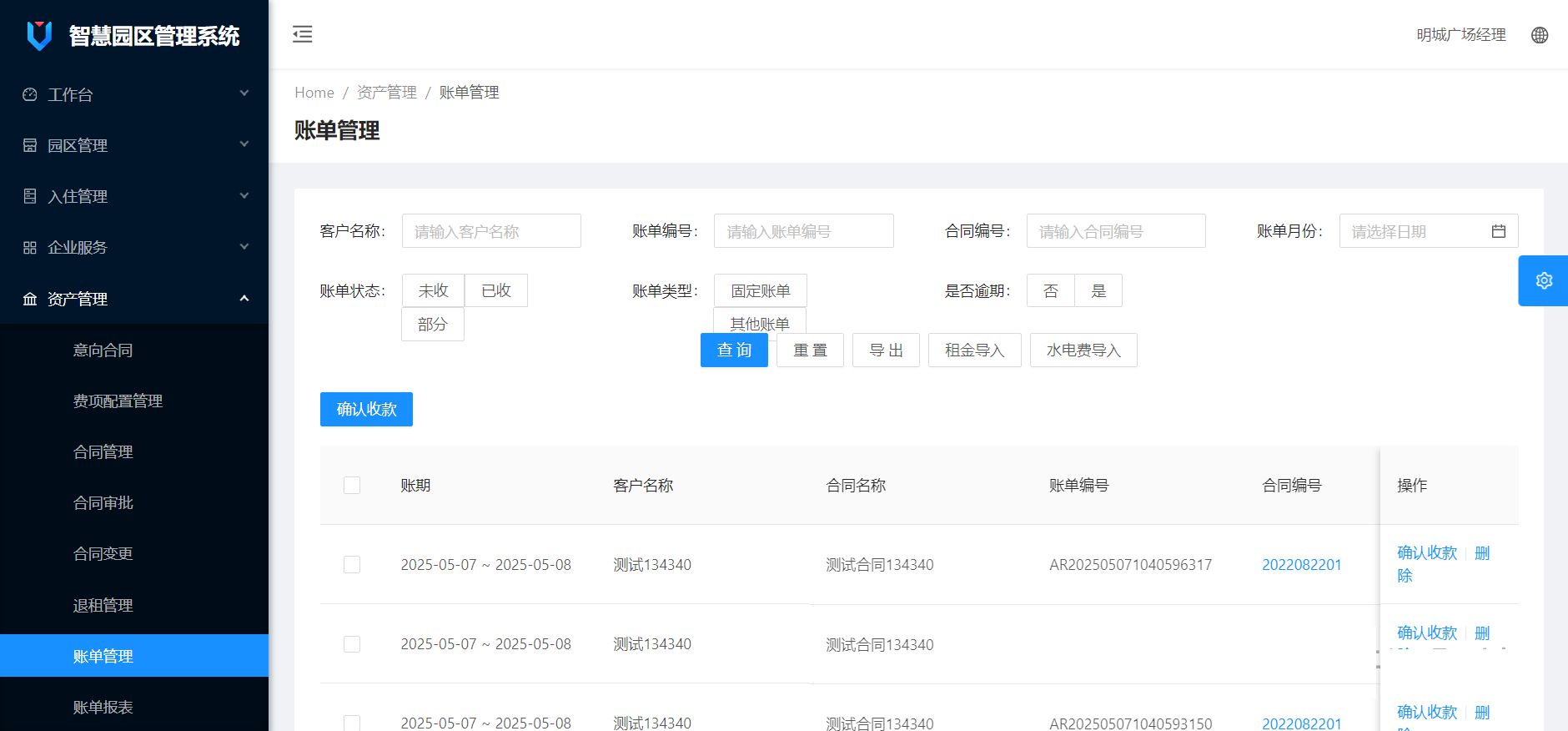 账单管理:根据合同生成房租、物业费、水电费等账单。