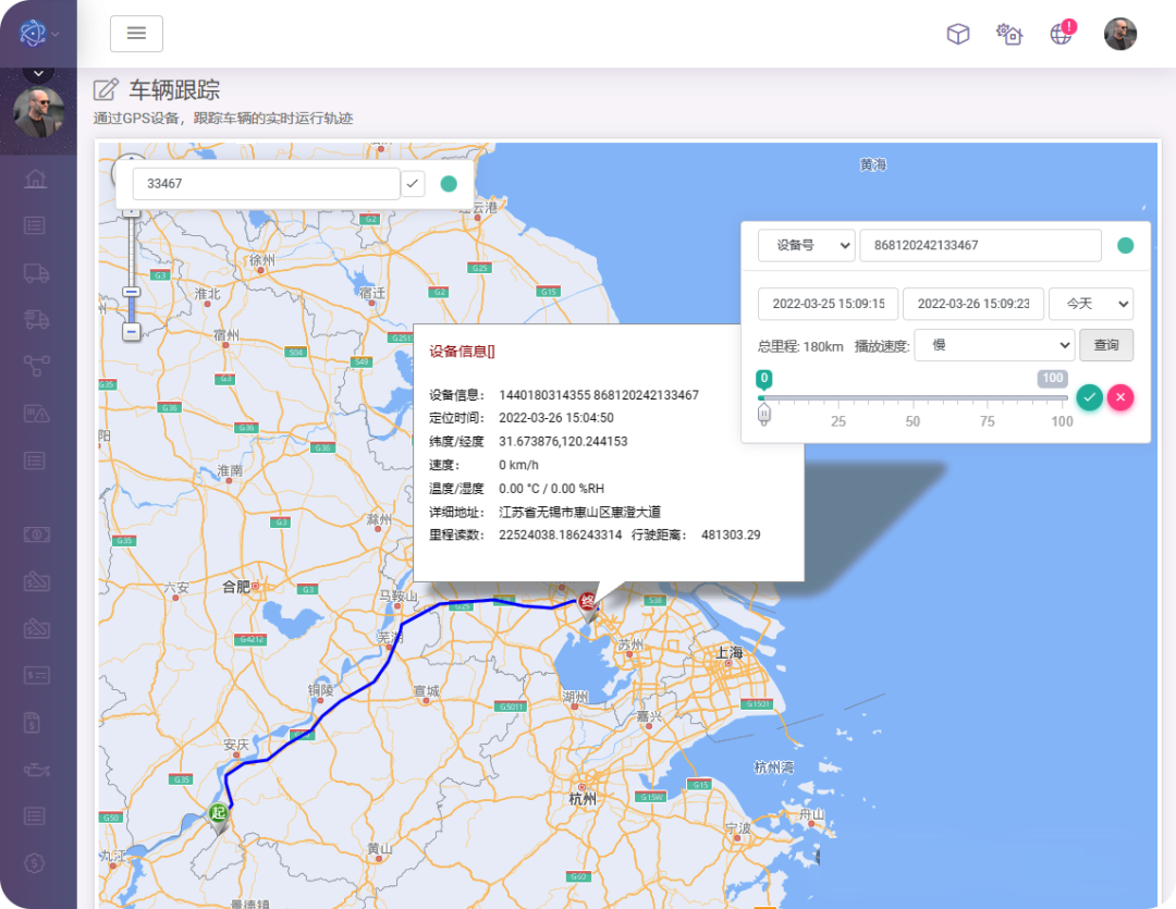 对车次和订单的当前实时位置追踪,系统无缝对接GPS设备,对接第三方的GPS服务平台,可实时查询和地图显示车辆、订单当前的最新位置以及历史轨迹查询