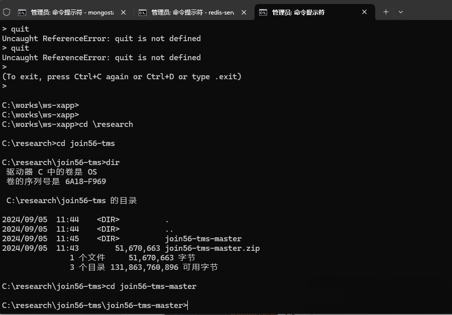 4. 运行命令行程序cmd,并进入项目根目录;