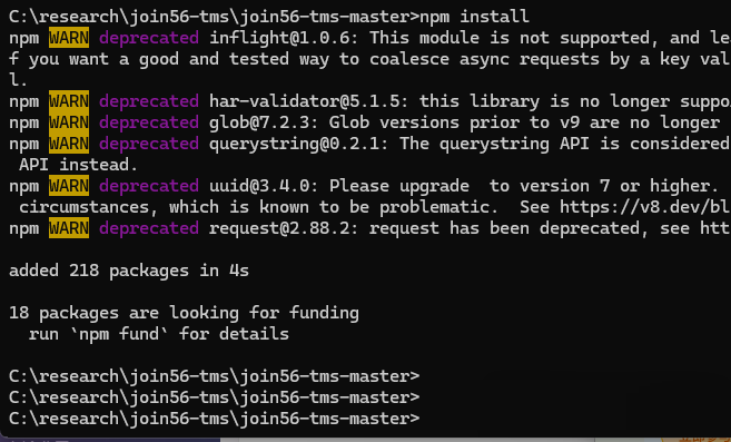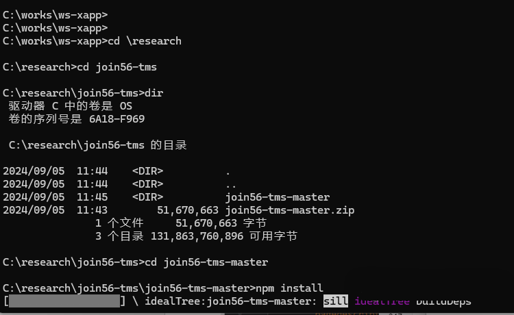 5.运行下列命令,以安装相关的nodejs 库模块:npm install;