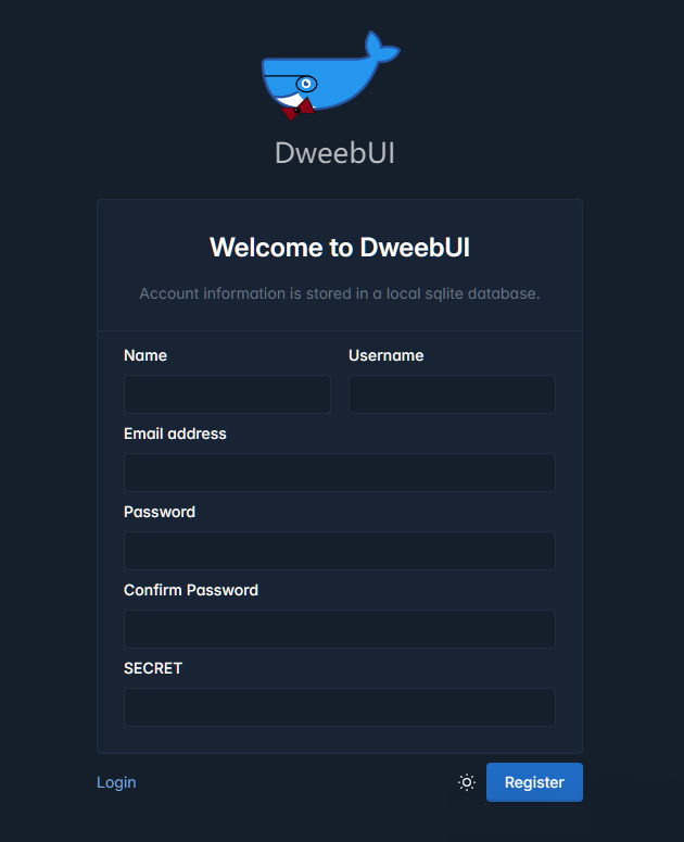 version: "3.9"services:  dweebui:    container_name: dweebui    image: lllllllillllllillll/dweebui    environment:      PORT8000      SECRETMrWiskers    restart: unless-stopped    ports:      - 8000:8000    volumes:      - dweebui:/app/config      # Docker socket      - /var/run/docker.sock:/var/run/docker.sock      # Podman socket      #- /run/podman/podman.sock:/var/run/docker.sock    networks:      - dweebui_netvolumes:  dweebui:networks:  dweebui_net:    driver: bridge