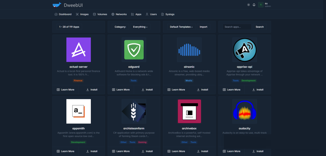 • Templates.json 与 Portainer 保持兼容性,允许您使用模板而无需使用      DweebUI。