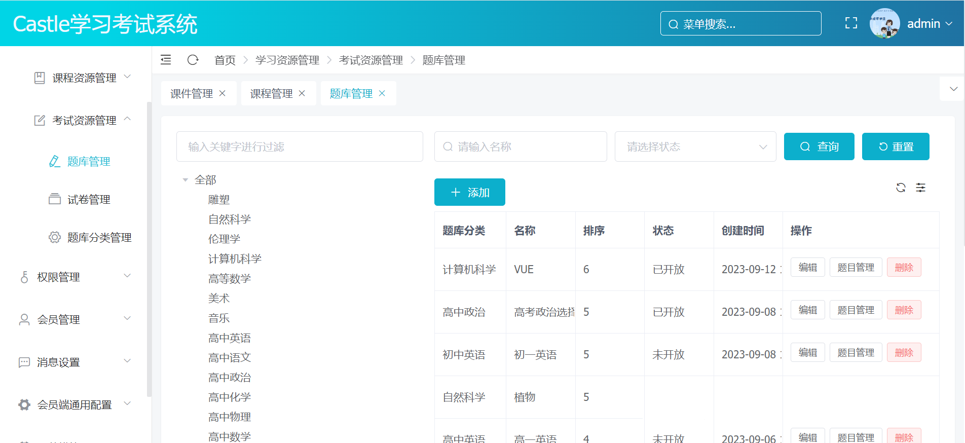 题库分类管理:根据科目或难度等因素对题目进行分类整理。