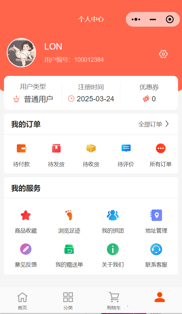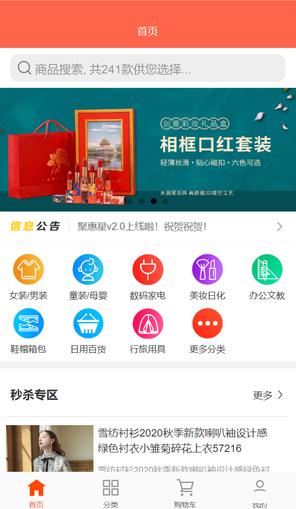 首页,商品搜索,首页轮播广告,公告通知,优惠券弹出,一级分类,团购专区,秒杀专区,活动专场,品牌入驻店铺,新品首发,人气推荐,重点类目呈现,一级分类导航,二级分类导航,分类商品展现,购物车,微信支付对接,购物车商品管理,下单邮件通知,用户设置,代理申请与推广二维码,佣金与明细,推广数据,订单管理,物流跟踪,我的服务,我的收藏,浏览足迹,拼团,地址管理,意见反馈,商品评论,秒杀