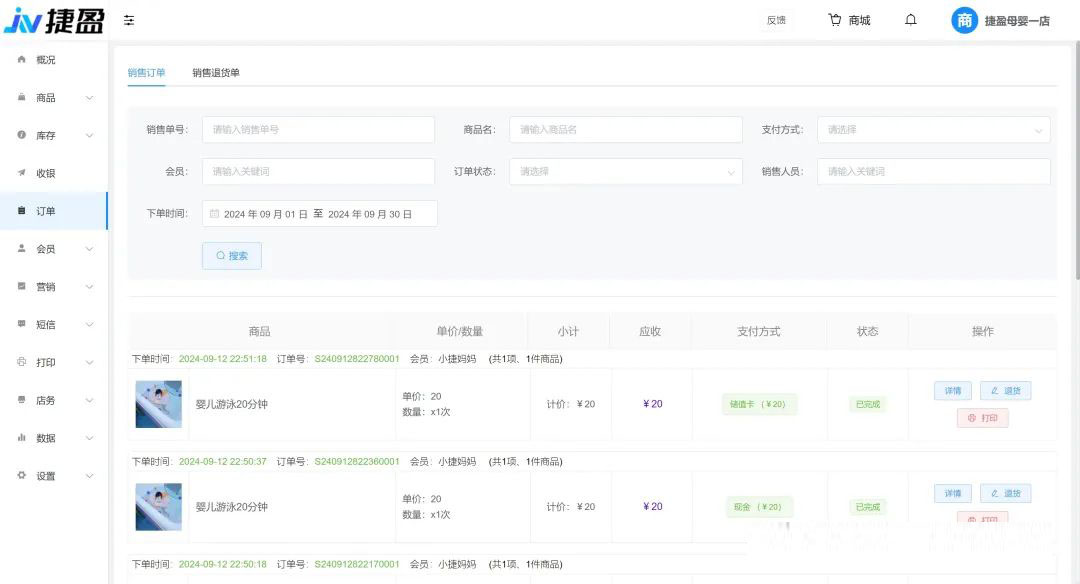 • 会员管理:包括会员积分,会员等级,会员储值,计次卡等功能。