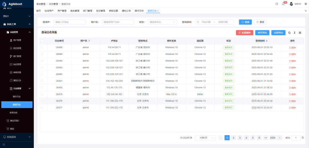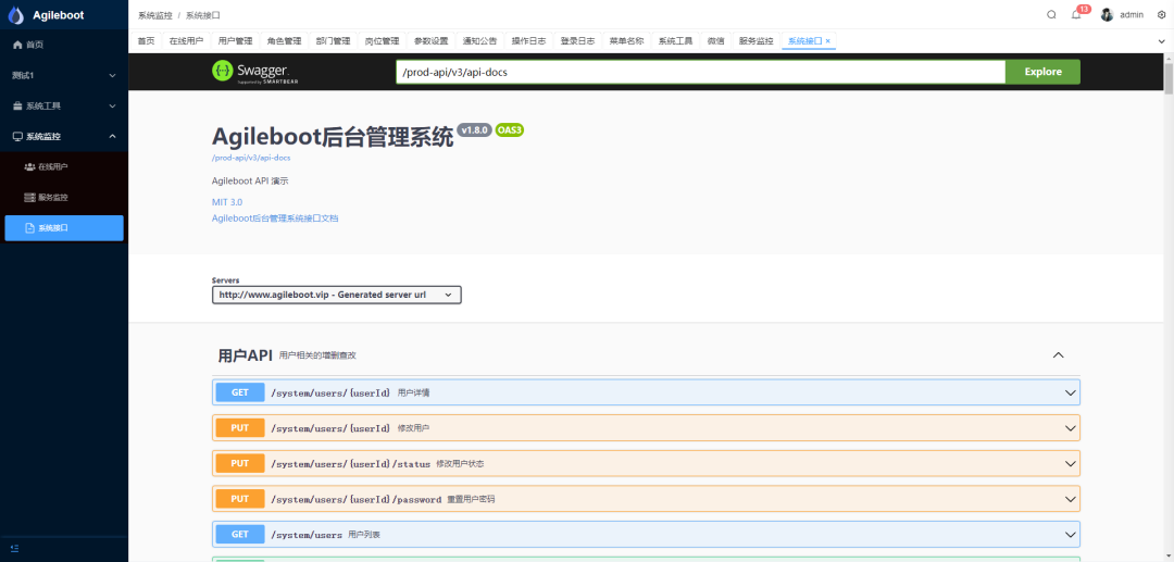 4. 找到agileboot-admin模块中的AgileBootAdminApplication启动类,直接启动即可