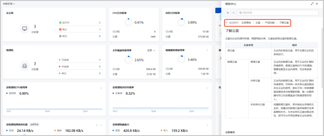 - 数据云盘:为云主机提供了额外的存储空间,用于云主机的存储扩展。