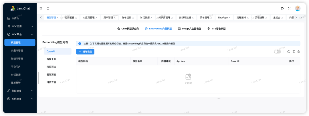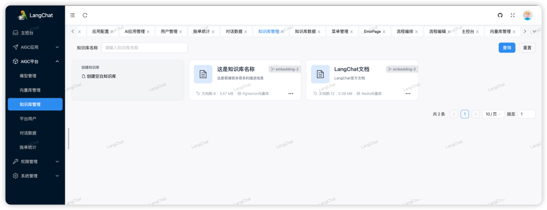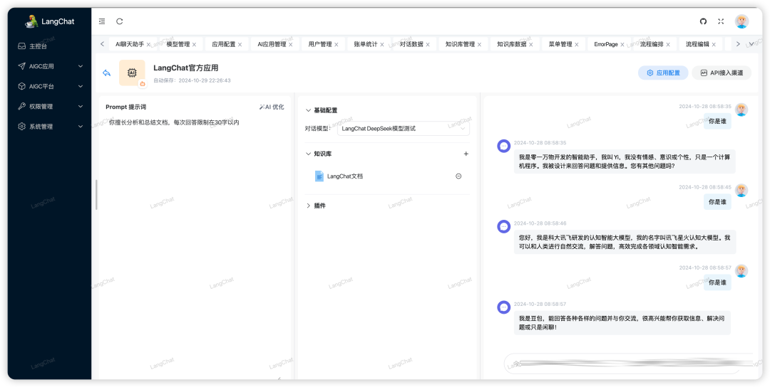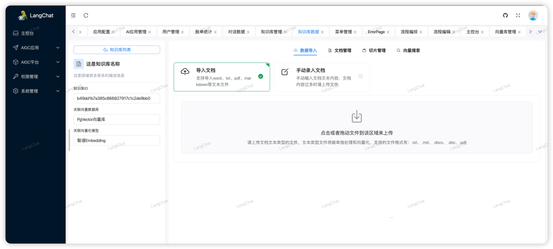 - 知识库:支持向量化知识库文档,定制化Prompt对话场景