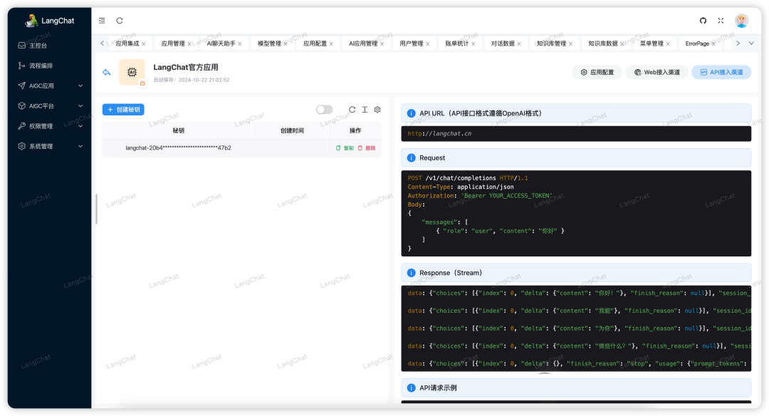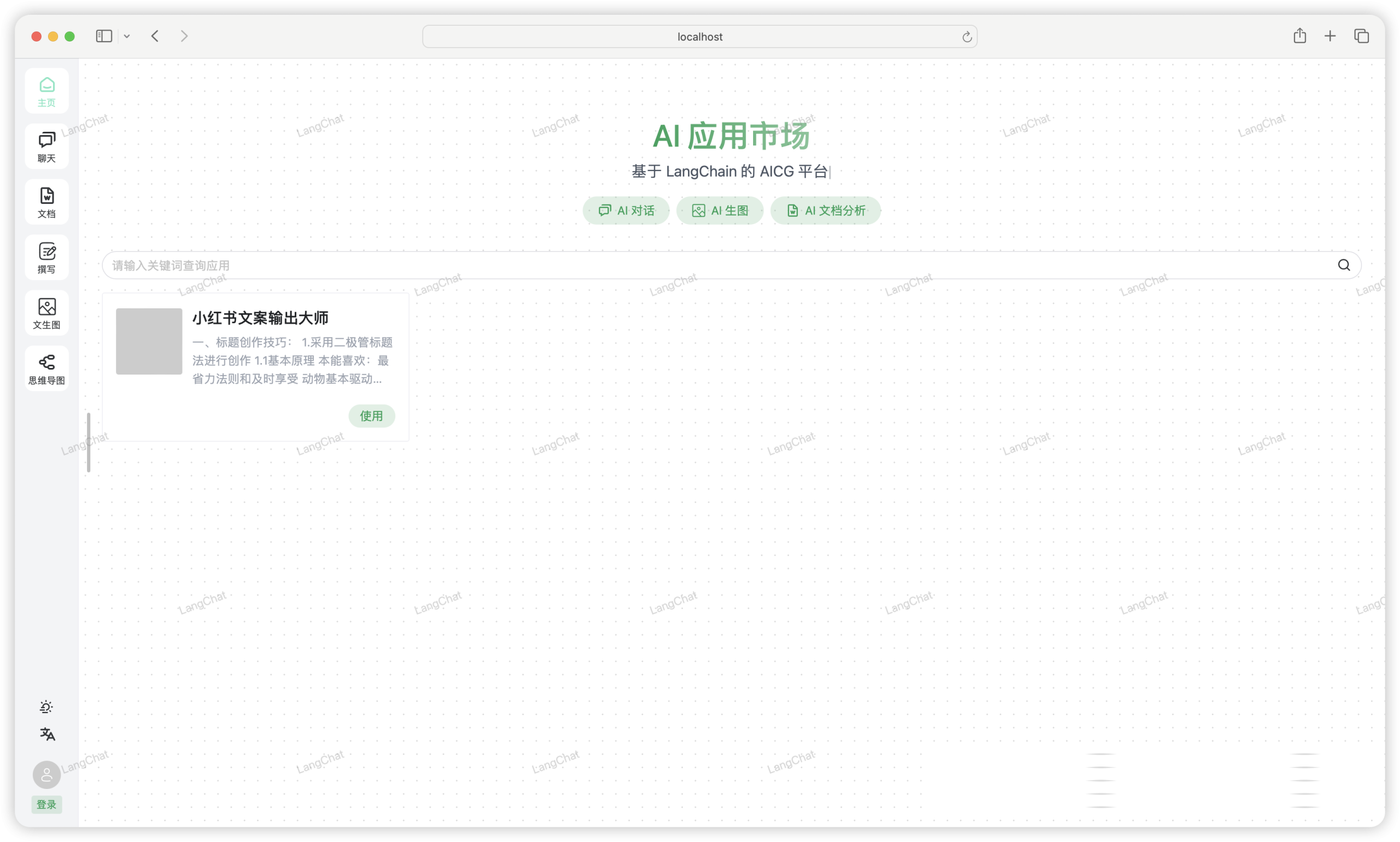LangChat 使用Java生态,前后端分离,并采用最新的技术栈开发。后端基于SpringBoot3,前端基于Vue3。 LangChat不仅为企业提供AI领域的产品解决方案,也是一个完整的Java企业级应用案例。这个系统带你全面了解SpringBoot3和Vue3的前后端开发流程、业务模块化,以及AI应用集成方案。 无论是企业开发,还是个人学习,LangChat都将为你提供丰富的学习案例。