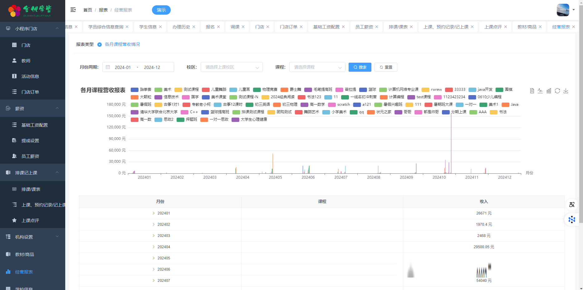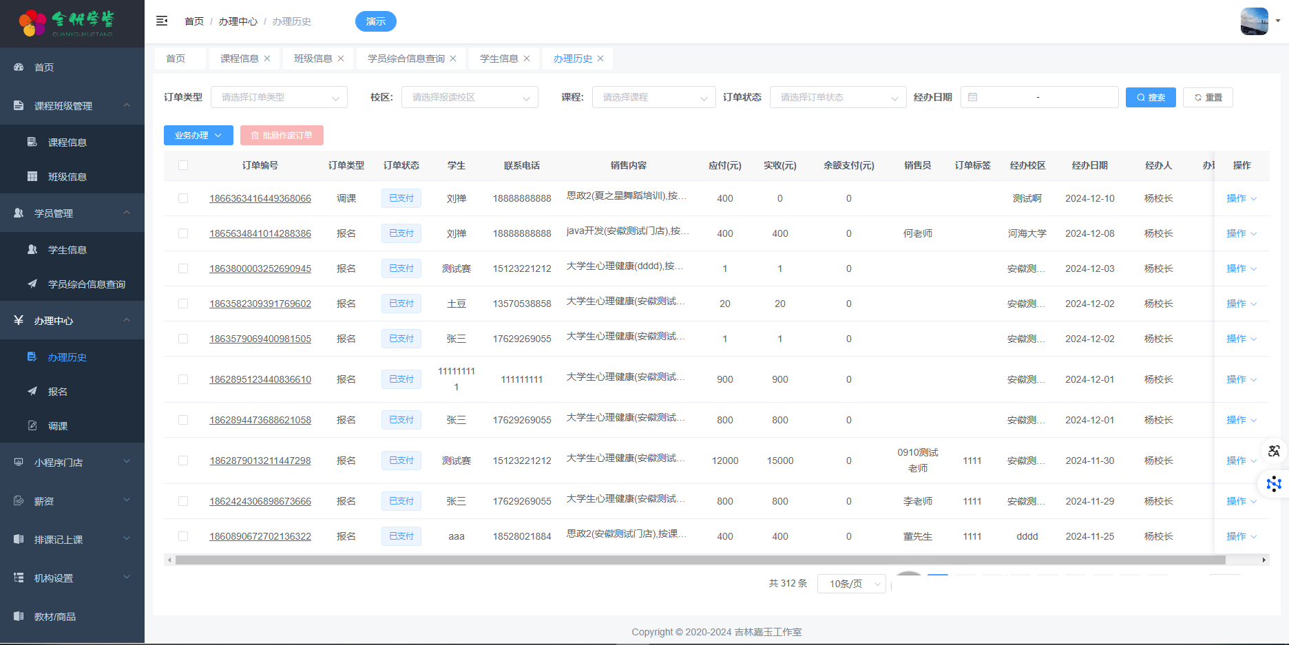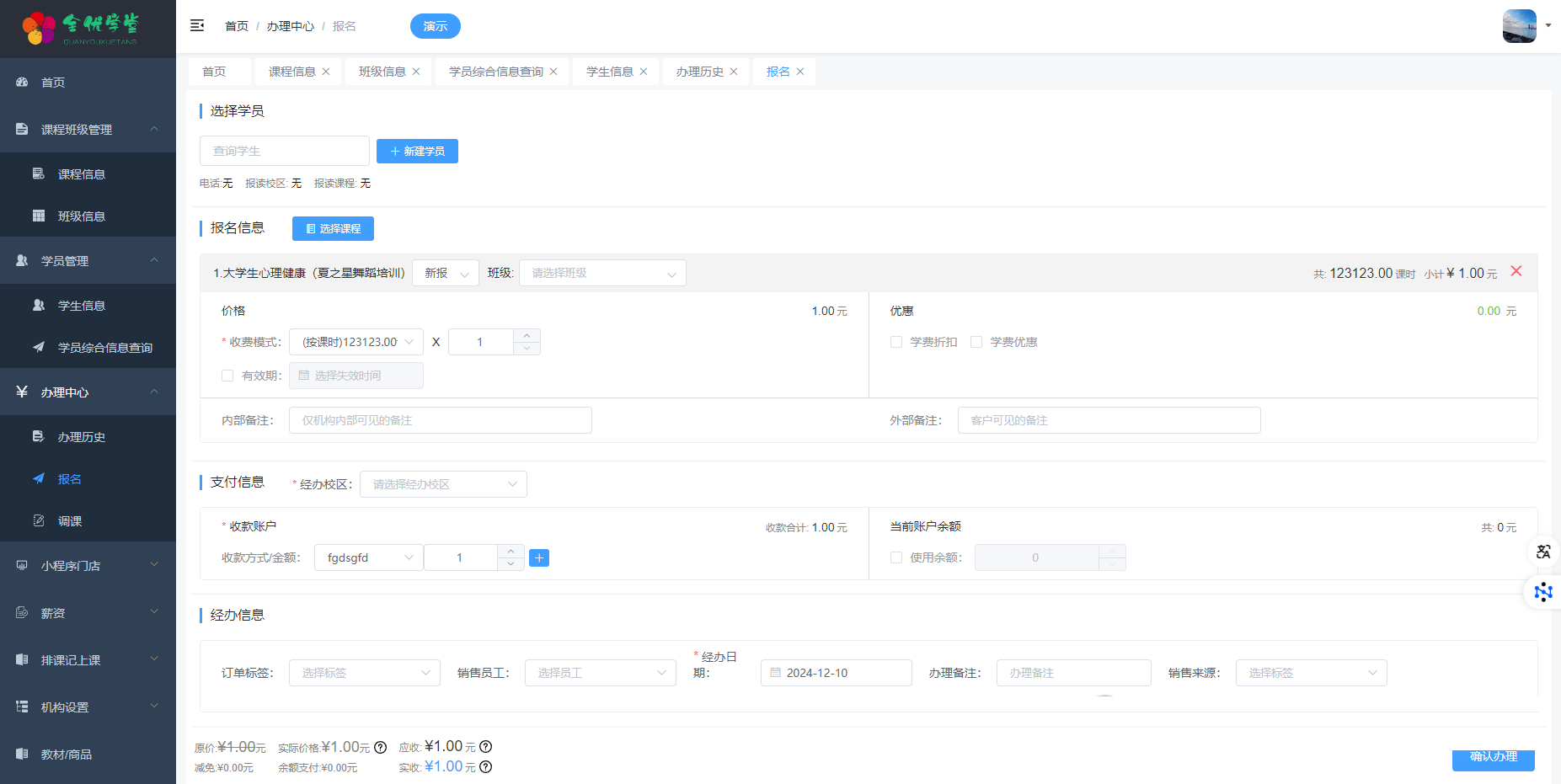 通过办理中心,您可以轻松完成课程报名、调课、退款、作废等操作,大大提高工作效率。而薪资模块则根据基础薪资、历史上课情况、课程销售情况自动计算员工薪资,帮助您更好地进行成本管理。