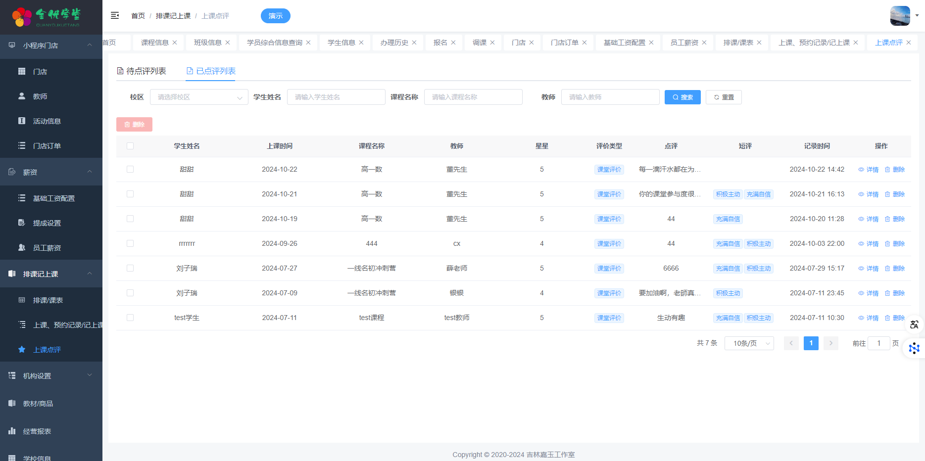 7. 商品库存与排课记上课